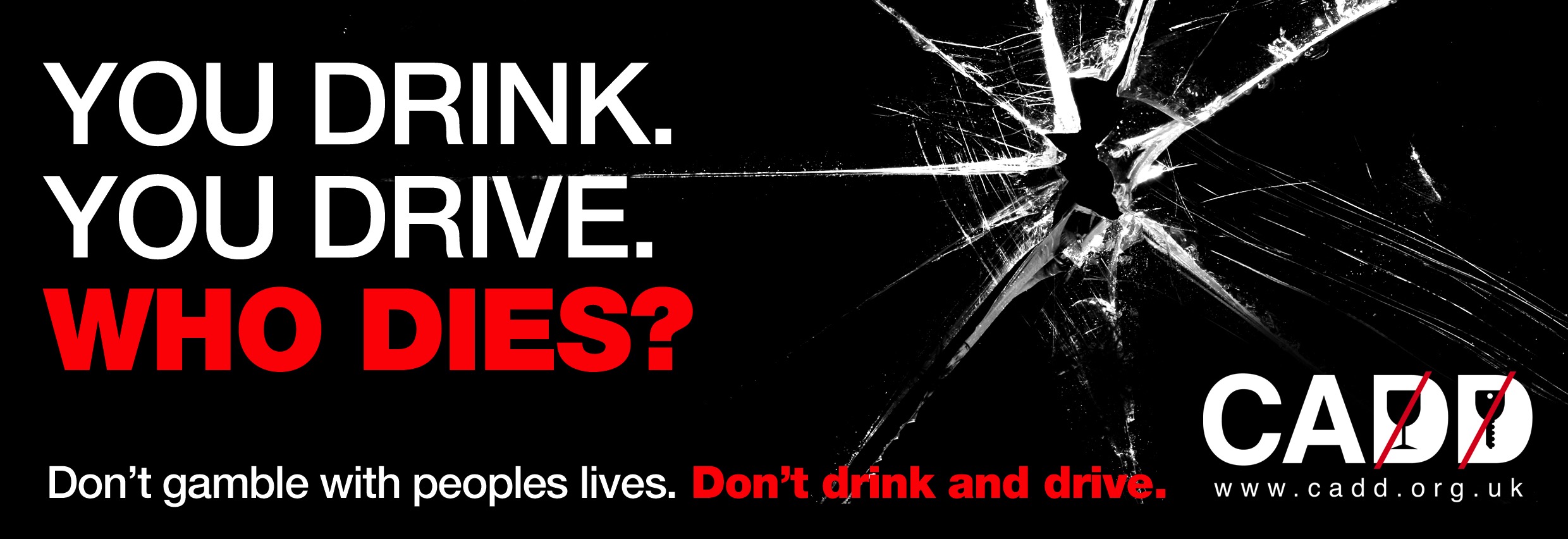 The acetate colour sticker can be attached to the corner of a car rear window and can be removed without any unsightly marking. Each sticker is printed with the message ‘You Drink, You Drive, Who Dies?’, including the CADD logo and a picture of a smashed windscreen.