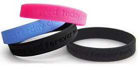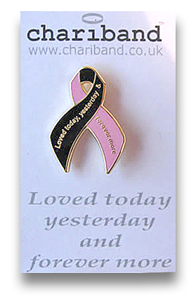 Openly demonstrating that you are in mourning for a loved one, the black, blue or pink Chariband wristband comes with the inscription "Loved today, yesterday, and forevermore".