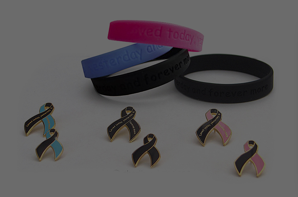 Available in six variations, depending on preference: pink and black (remembering a female), blue and black (remembering a male) and black (general remembrance).